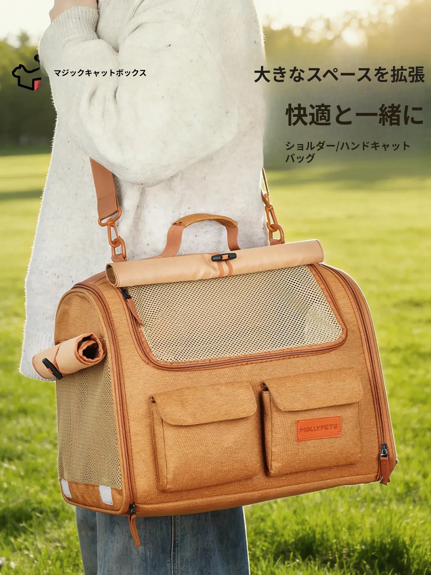 便利で軽量な猫用キャリーバッグ!肩掛け可能で拡張可能、大容量で通気性抜群。折りたたみ式で外出時も楽々、愛するペットと一緒に快適な旅を楽しんでください!